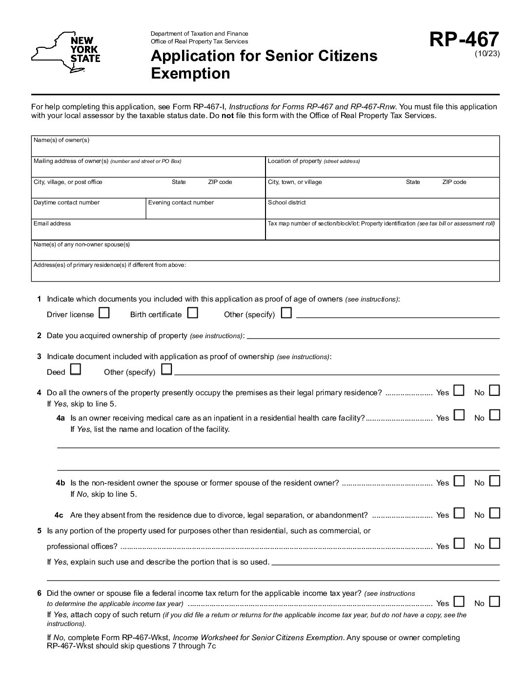 View Larger Image Senior Citizen Exemption RP 467 Application Preview Filename: Assessor_Senior_Citizen_Exemption_RP-467_Application.pdf File Type: pdf File Size: 772 KB Categories: Assessor Tags: Exemption, Senior, Senior Citizen By Admin|2026-01-09T13:00:43-05:00October 17, 2025|Comments Off on Senior Citizen Exemption RP 467 Application Share This Story, Choose Your Platform! FacebookXRedditLinkedInWhatsAppTelegramTumblrPinterestVkXingEmail About the Author: Admin