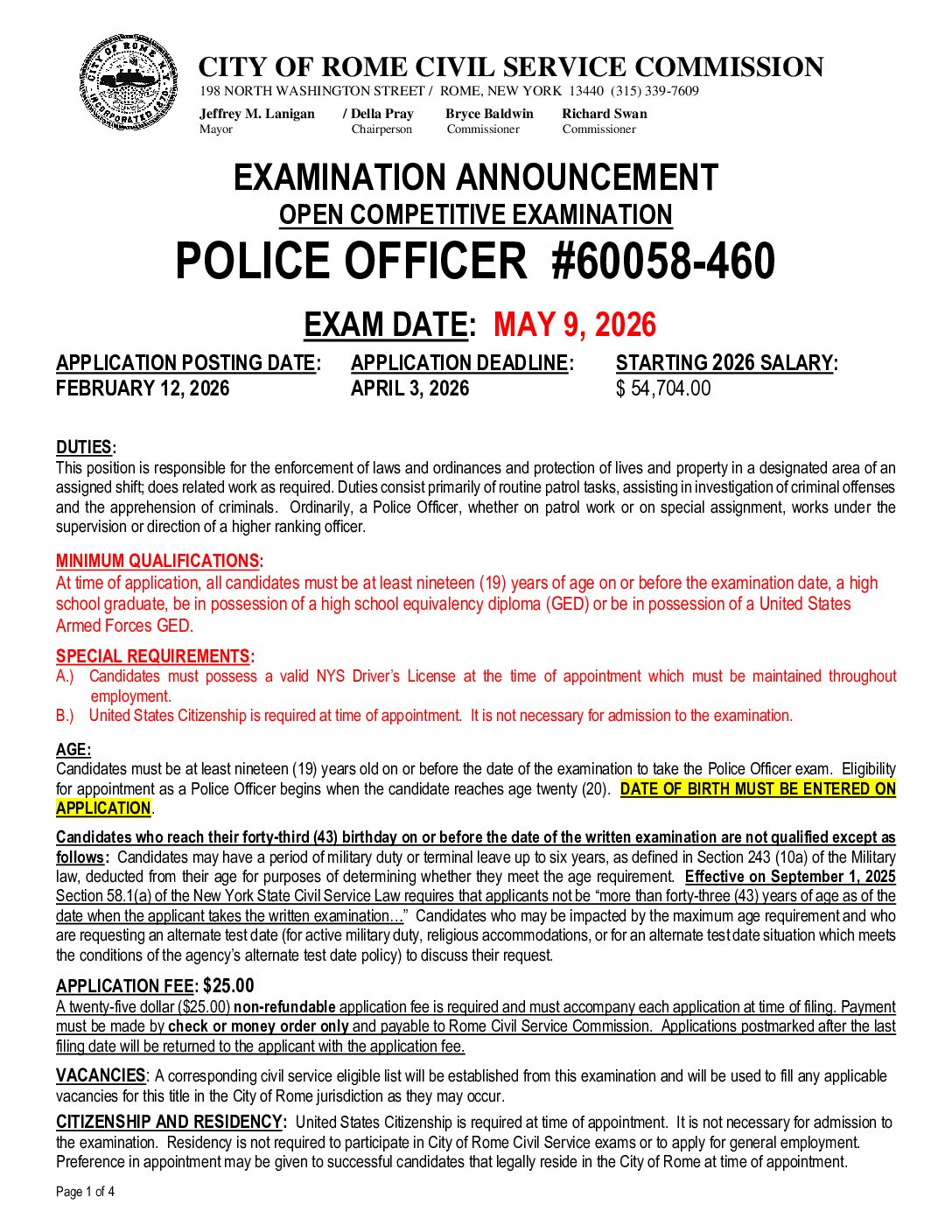 View Larger Image Police Officer #60058-460 Exam Announcement Preview Filename: POLICE-OFFICER-60058-460-EXAM-ANNOUNCEMENT.pdf File Type: pdf File Size: 122 KB Categories: Civil Service Exam Announcements By Admin|2026-02-19T12:52:01-05:00February 19, 2026|Comments Off on Police Officer #60058-460 Exam Announcement Share This Story, Choose Your Platform! FacebookXRedditLinkedInWhatsAppTelegramTumblrPinterestVkXingEmail About the Author: Admin