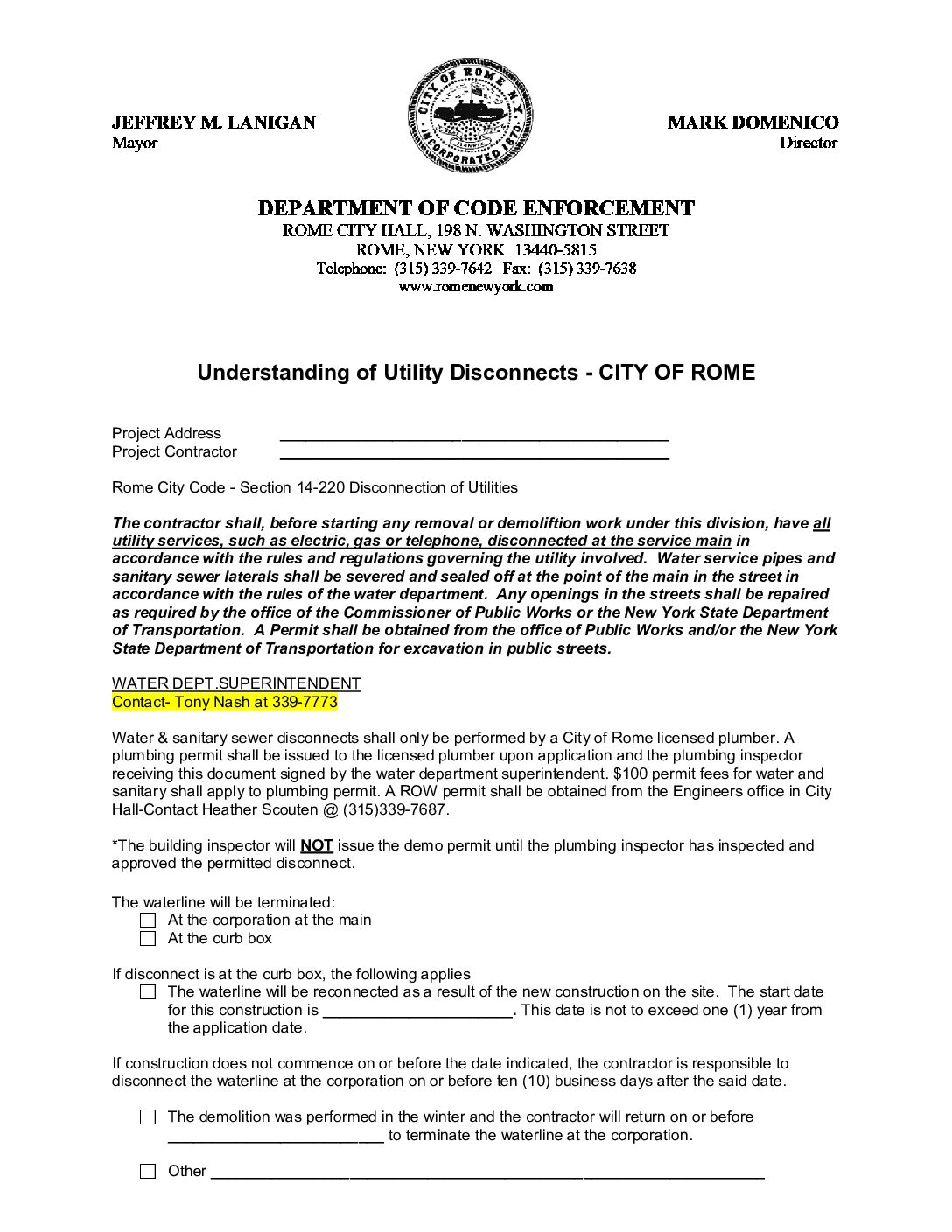 View Larger Image Utility Disconnect Form Preview Filename: Utility-Disconnect-Form.pdf File Type: pdf File Size: 269 KB Categories: Code Enforcement By Admin|2026-01-09T14:27:34-05:00January 9, 2026|Comments Off on Utility Disconnect Form Share This Story, Choose Your Platform! FacebookXRedditLinkedInWhatsAppTelegramTumblrPinterestVkXingEmail About the Author: Admin